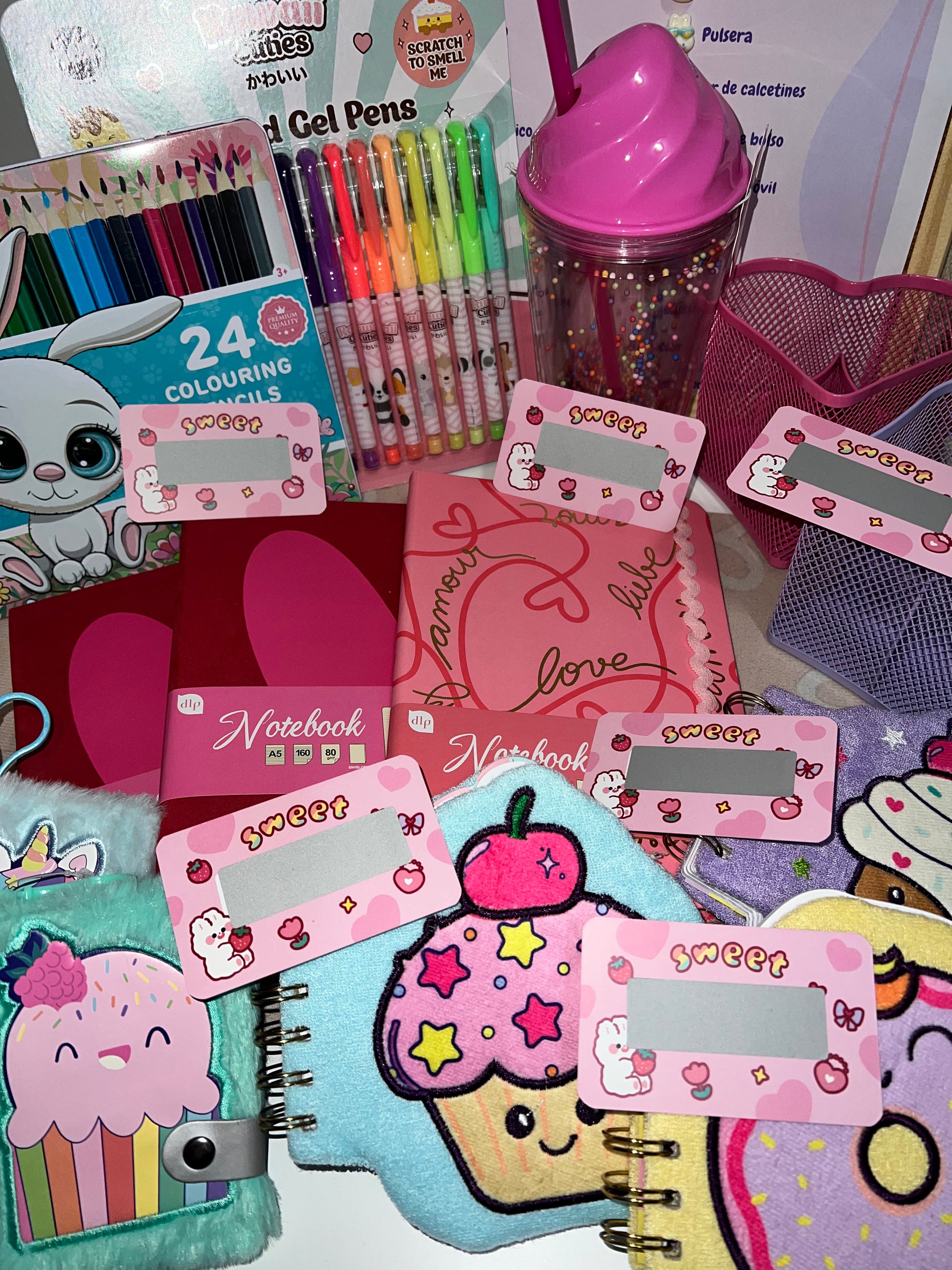 en nuestros rascas podrás encontrar una gran variedad de productos premium, pueden ser productos kawaii, cuadernos de calidad, neceseres grandes, estuches premium, etc.